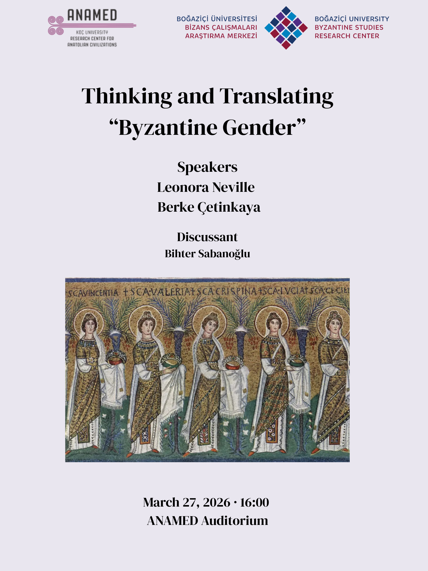 Lecture by Leonora Neville and Berke Çetinkaya: "Thinking and Translating "Byzantine Gender"" - 27 March 2026 (3 PHOTOGRAPHS)